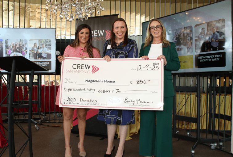 Our annual CREWtini is CREW San Antonio’s signature fundraiser to support scholarships for students and members. CREW San Antonio also has drives and events throughout the year to benefit local charities, including the Magdalena House, For Her, and The Vault - awardees of 2025. And our charities for 2026 are For Her, Magdalena House, and YWLA.